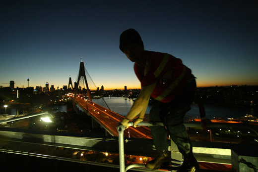 Working on billboard above Anzac Bridge, Sydney Dean Sewell