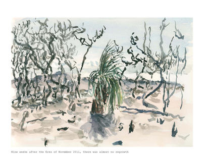 Tom Carment’s fine watercolours and drawings accompany his entertaining and observant stories. Stunning landscape photographs by his friend, photographer Michael Wee, sit beside Tom’s paintings. This is a most beautiful and pleasing art/photography/travel/storybook. There are two major exhibitions of Tom’s work currently on in Sydney (details following) – both have many of the original artworks. Not to miss! And if you buy one more book this year, make it this one. It will make you want to head bush…