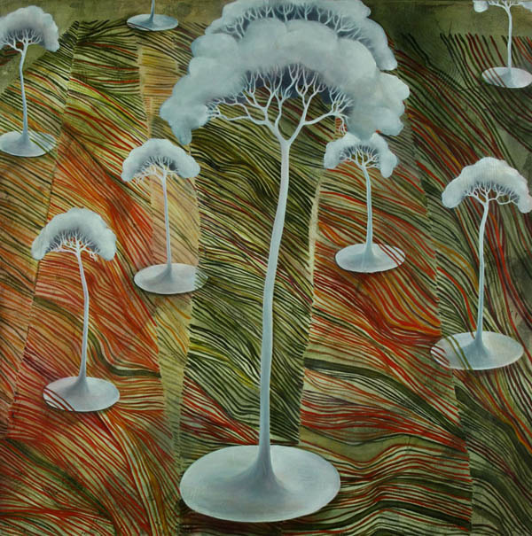 This is Helen Tiernan’s first Sydney solo exhibition. Full of colour and texture, Helen plays with themes inspired by the landscape and her Aboriginal heritage, combined with colonial influences and the decorative home environment. For early settlers home was inside their houses, for Aboriginal people their home was outside, in Country. Balance, beauty and home – these are the links that inspire this work.