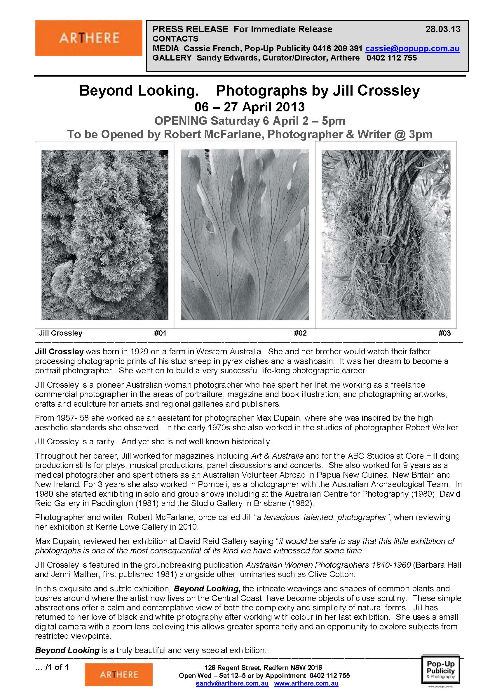 BEYOND LOOKING. Jill Crossley 06 – 27 April 2012
