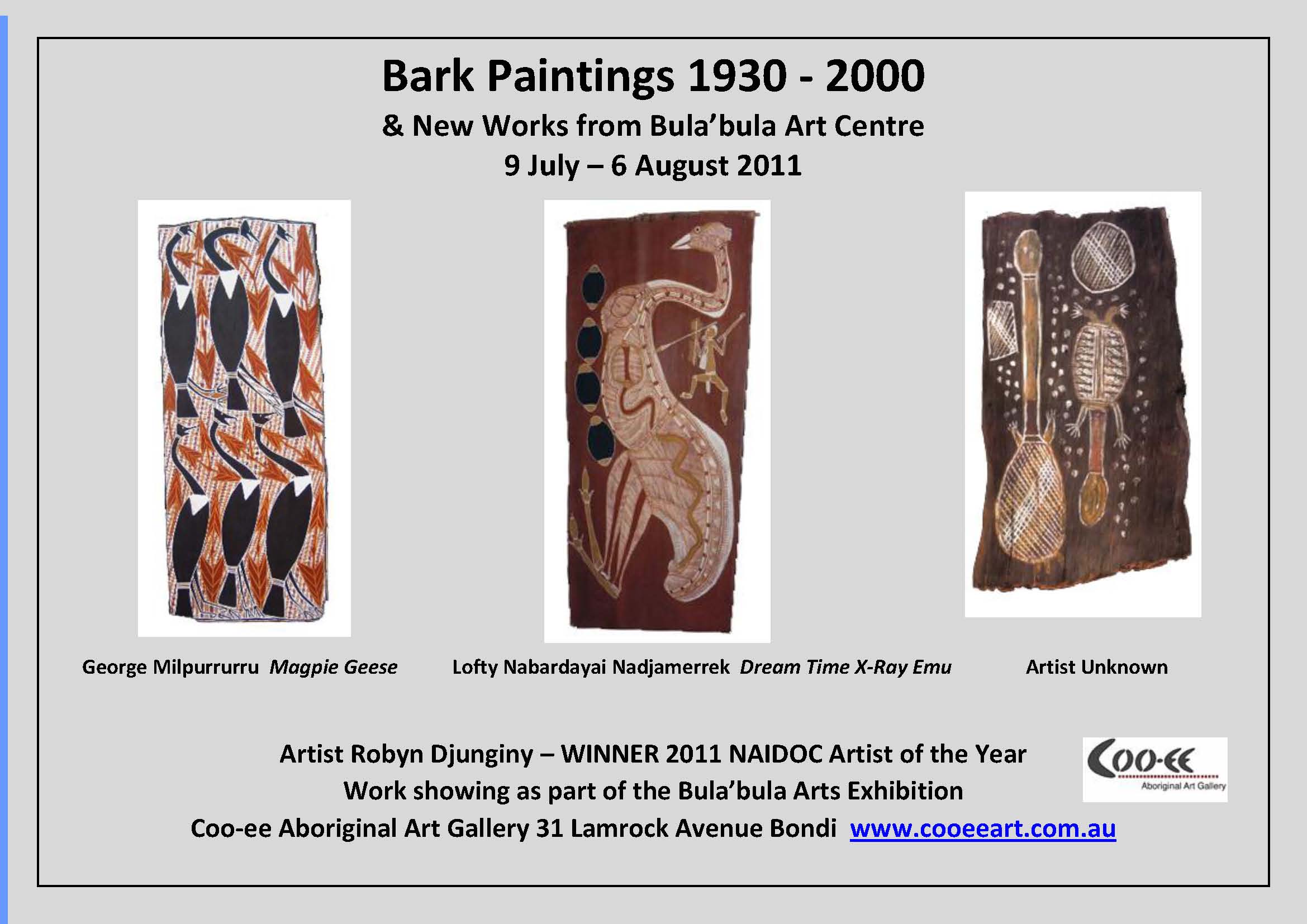 The largest selection of Bark Paintings you will find outside a collecting institution. A historic and beautiful collection of works.