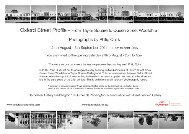 Oxford Street Profile: From Taylor Square to Queen Street Woollahra. Photographs by Philip Quirk. 24 Aug – 5 Sept 2011 Share this:Tweet Click to email a link to a friend (Opens in new window) Email Click to print (Opens in new window) Print Like Loading...